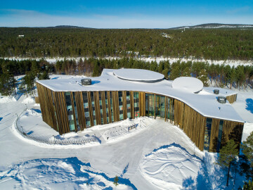 Puunkäyttö ilmentää saamelaista kulttuuria, ja kaikki käytetyt puulajit löytyvät lähialueelta. Ulkoverhoilu on rautavihtrillillä käsiteltyä kuusta. Suurten salien ulkopintojen panelointi ovat palonsuojakäsiteltyä erikoisluokan mäntyä, ja sisäpinnat koivua. Myös auditorion ja monitoimisalin akustiikkaelementtien pinnat ovat koivuviilutettuja. Alakatot ja osa aulatilojen seinäpinnoista on puumagnesiittilevyä. Levyt toimivat akustisina pintoina ja niiden karheus tuo materiaalintuntua sisätilaan. Lattia on sirotepintaista betonia ja rakennuksen runko niin ikään betonia.
